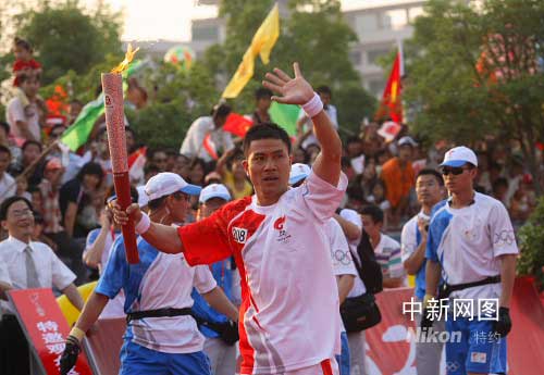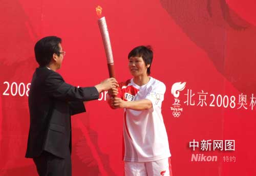 張順?lè)紡闹泄步B興市委書(shū)記張金如手中接過(guò)奧運(yùn)火炬。作 者:周翌
