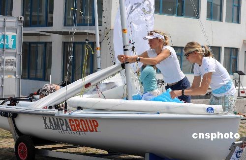 為迎戰(zhàn)二00八北京奧運(yùn)會(huì)帆船比賽,美國(guó)帆船對(duì)已于近日來(lái)到奧運(yùn)會(huì)帆船賽舉辦城市青島的奧帆賽訓(xùn)練基地,進(jìn)行賽前的場(chǎng)地適應(yīng)性訓(xùn)練。圖為美國(guó)帆船隊(duì)的隊(duì)員們準(zhǔn)備下海訓(xùn)練。 中新社發(fā) 曲連遵 攝