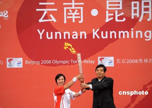 中新網(wǎng)6月9日電 北京奧運(yùn)圣火今天在云南昆明開始傳遞,起跑儀式安排在昆明世博園的中國館前的廣場,長跑名將鐘煥娣跑出第一棒。云南是奧運(yùn)火炬在中國境內(nèi)傳遞的第12個(gè)省、第二個(gè)西部省份。