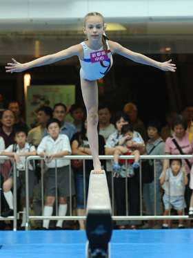 將軍澳新都城中心26日變身體操場館,邀得高拔,并帶來她三位小得意門生──8歲的Sophia、10歲的Sydney和11歲的Rebecca,為市民展示技藝。表演項(xiàng)目有自由體操、高低杠及平衡木,三位小體操選手的精彩表演引來不少市民圍觀叫好。