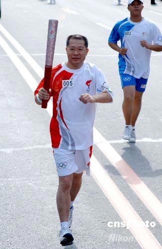 中央電視臺(tái)副臺(tái)長(zhǎng)孫玉勝在吉林長(zhǎng)春傳遞奧運(yùn)火炬。中新社發(fā) 廖攀 攝