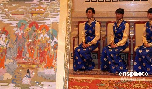 7月15日下午,中國西藏文化保護與發(fā)展協(xié)會、四川省甘孜藏族自治州政府聯(lián)合在北京舉行新聞發(fā)布會宣布,今年7月30日至8月20日將在北京民族文化宮舉辦中國民族藏文化經(jīng)典藝術《格薩爾千幅唐卡》展,該展覽已被北京奧組委列為北京奧運文化節(jié)的重點文化項目。北京首展后,《格薩爾千幅唐卡》還將在中國臺港澳地區(qū)和歐洲、北美等地進行長期的全球巡展。中新社發(fā) 孫自法 攝