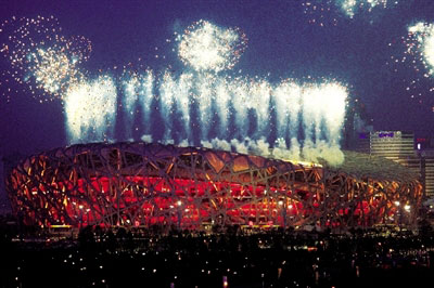 組圖:“鳥巢”首次全身亮燈彩排 并試放禮花(3)