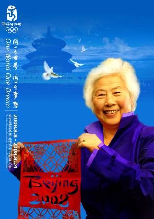 北京奧組委今天(18日)正式對外公布了北京2008年奧運會、殘奧會官方海報和官方圖片。圖為人文海報《微笑北京 共享奧運》。微笑的北京歡迎世界各地的人們共享北京奧運。孩子、青年、老人的微笑,洋溢著中國人的熱情與友好,共同演繹“同一個世界 同一個夢想”的和諧樂章。該方案三幅合一成為組畫。