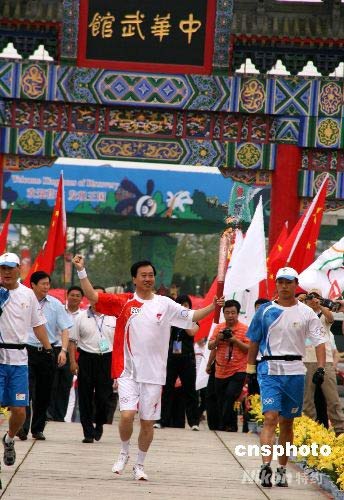 7月19日,北京奧運火炬在大連傳遞,大連市市長夏德仁擔任最后一棒火炬手。 中新社發(fā) 周兆軍 攝
