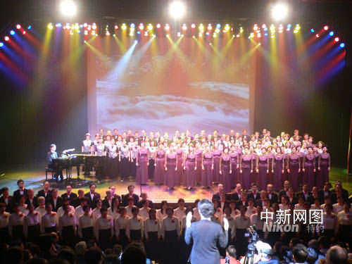 溫哥華三個(gè)合唱團(tuán)聯(lián)袂演唱《我的中國(guó)心》等歌曲。