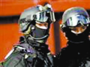 “法國總統(tǒng)安全組”外出執(zhí)行任務(wù),每人都要攜帶一只“公文包”,里面包括一支MP5K沖鋒槍和彈藥、麻醉手榴彈、眩暈手榴彈等。安全組還使用特殊的作戰(zhàn)裝備,包括地磁儀、炸彈探測儀和警犬等,還攜帶可以折疊的“凱夫拉”防彈牌,一旦總統(tǒng)車隊遭到突然襲擊,安全小組成員會馬上使用“凱夫拉”組成一道防護墻,阻擋襲擊(見上圖)。