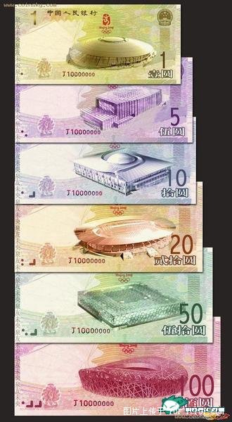 網(wǎng)絡(luò)上流傳的成套“奧運紀(jì)念鈔”圖片