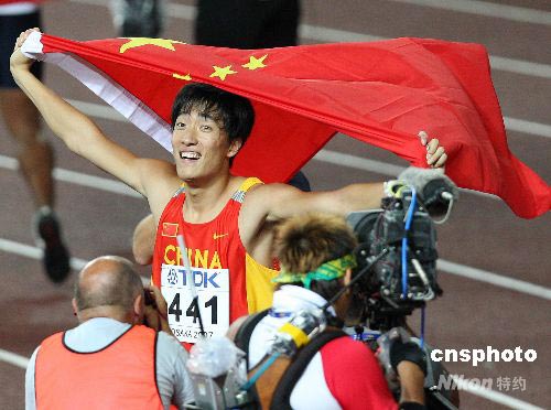 圖為劉翔獲得大阪世界田徑錦標(biāo)賽男子一百一十米欄金牌。中新社發(fā) 毛建軍 攝