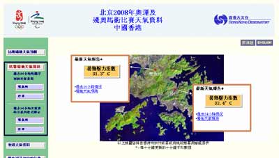 公眾人士可以從天文臺的馬術(shù)比賽天氣網(wǎng)站獲得最新比賽場地的詳細(xì)天氣預(yù)測、天氣警告、實時天氣狀況及環(huán)境保護署提供的賽場區(qū)域空氣污染指數(shù)。