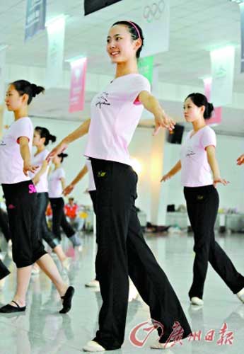 馬妮是這次強(qiáng)化培訓(xùn)的形體老師,也是我國(guó)三軍儀仗隊(duì)的形體教練。馬妮說,自己給她們打90分!霸谖覀儍芍艿男误w強(qiáng)化培訓(xùn)中,不僅有民族舞,還有古典舞和芭蕾舞。由于中國(guó)的東方人形體不同于歐美人,因此我們通過這些舞蹈來(lái)塑造出我們中國(guó)姑娘獨(dú)有的優(yōu)雅、含蓄,我經(jīng)常跟她們說的是,拉長(zhǎng)美麗的頸,打開高貴的胸,伸展優(yōu)雅的手臂!