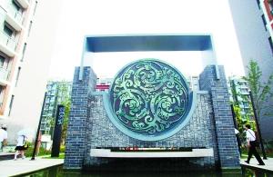 不知不覺地來到宿舍前,居住區(qū)共有運(yùn)動員公寓樓42棟。我被樓的標(biāo)志牌所吸引,上面寫著國奧村多少棟樓,旁邊寫有“DREAM WORLD 2008”(夢想世界2008),鑲邊全是長城圖案。樓旁邊的隔斷是老四合院式的磚瓦,一片古樸味道。