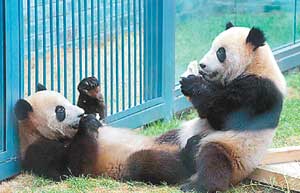 5月26日到京后,如今在北京動(dòng)物園生活了兩個(gè)月的8只奧運(yùn)大熊貓近況如何,胖了、瘦了,是不是長(zhǎng)乖了?昨天本報(bào)記者走進(jìn)北京動(dòng)物園大熊貓館為你揭開(kāi)8只奧運(yùn)熊貓的“奧運(yùn)生活”。