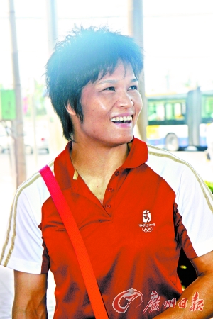 離北京奧運會開賽還剩下不到一個星期,中國代表團所有運動健兒均進入了最后的備戰(zhàn)階段,要在這個時候“逮”到?jīng)_金選手并進行采訪談何容易?不過,記者就在今天偶然得到了這一良機。大約在中午12時左右,記者正與兩名同行一起走在奧林匹克體育中心東門的馬路邊,迎面而來的是穿著紅色運動服的兩位女士!斑@不是冼東妹嗎?”記者曾經(jīng)于2004年冼東妹在雅典奪冠的前夜,特地到她位于廣州體院的家里進行過采訪,對這位憨厚的廣東女子留下了深刻的印象。冼東妹也認出了記者,笑容滿面地打了個招呼。