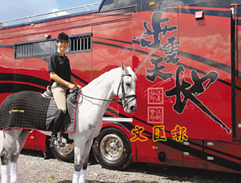 難得華天輕松面對比賽,但絕不草率,單從為自己及其座騎“武松”攜帶來港、重達(dá)575公斤的行裝便知道他對奧運的認(rèn)真及仔細(xì),他說:“為適應(yīng)香港氣候,我每天早上及黃昏都會帶武松出外簡單訓(xùn)練,但它近日顯得有點累,我們訓(xùn)練時要非常小心,以免它受傷!