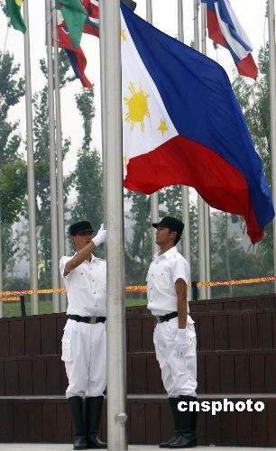 8月4日,菲律賓奧運(yùn)代表團(tuán)在北京奧運(yùn)村舉行升旗儀式。