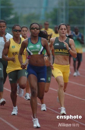 八月四日,巴西奧運(yùn)代表隊(duì)女子田徑選手在澳門(mén)進(jìn)行接力賽訓(xùn)練。 中新社發(fā) 畢永光 攝