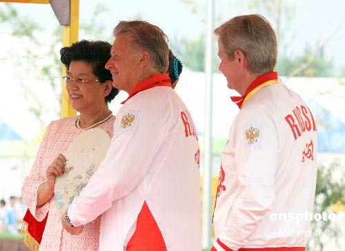 8月5日,俄羅斯奧運代表團在北京奧運村舉行升旗儀式,北京奧運村村長陳至立出席了升旗儀式。中新社發(fā) 盛佳鵬 攝