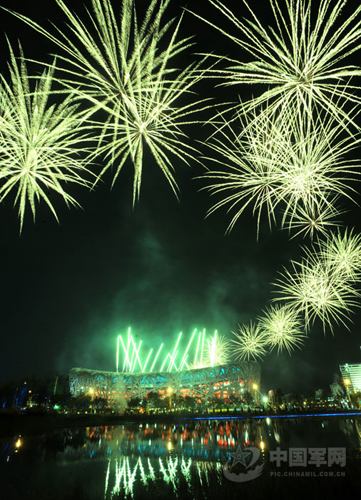 奧運開幕式彩排發(fā)射禮花。馮凱旋 攝