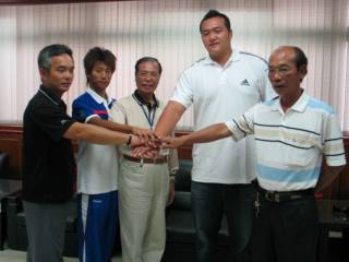 中新網(wǎng)8月6日電 據(jù)臺(tái)灣媒體報(bào)道,臺(tái)中縣鉛球運(yùn)動(dòng)員張銘煌、林家瑩及自行車選手馮俊凱,將代表中華臺(tái)北代表團(tuán)參加北京奧運(yùn)。臺(tái)中縣長(zhǎng)黃仲生今天接見(jiàn)張銘煌與馮俊凱,并致贈(zèng)獎(jiǎng)勵(lì)金,祝他們“旗開得勝”,為家鄉(xiāng)爭(zhēng)光。