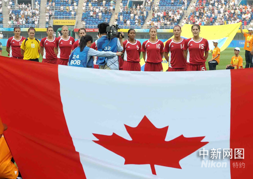 8月6日下午,奧運(yùn)女足在天津“水滴”體育場(chǎng)拉開(kāi)戰(zhàn)幕,首場(chǎng)比賽阿根廷女足迎戰(zhàn)加拿大。圖為加拿大女足出場(chǎng)儀式。 中新社記者 陳文 攝