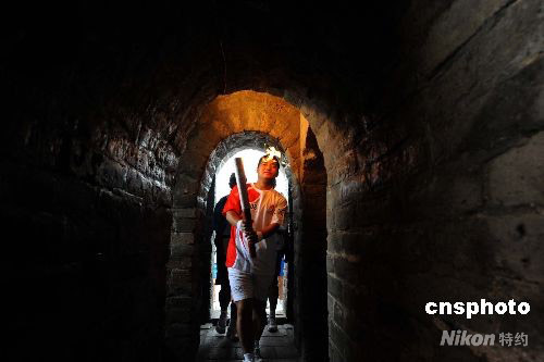 圖:奧運(yùn)圣火穿越萬(wàn)里長(zhǎng)城烽火臺(tái)