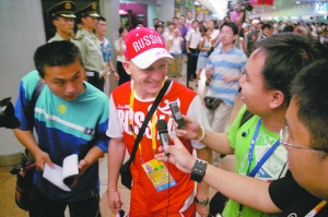 一直在首爾參加熱身賽的俄羅斯跳水隊(duì)8月4日有4名隊(duì)員到達(dá),昨日,剩余的6名隊(duì)員全部到達(dá)北京。等待薩烏丁的過(guò)程中,不斷地有志愿者對(duì)記者說(shuō):“等下能幫忙找薩烏丁要個(gè)簽名嗎?”而且,這次追星的人群不再是年輕人的天下,一些中年人也參與到簽名、合影的陣營(yíng)之中。
