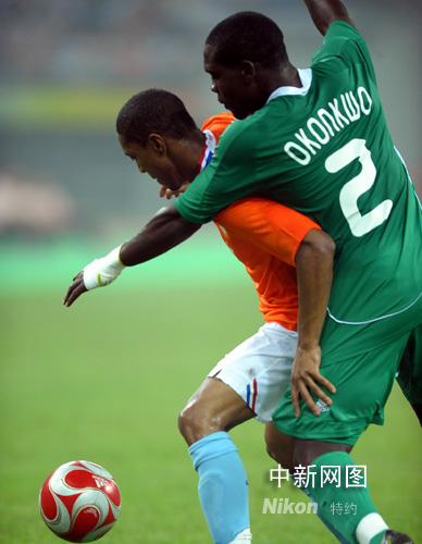 8月7日晚,奧運(yùn)男足小組賽在天津“水滴”體育場舉行,荷蘭隊(duì)身著傳統(tǒng)的橘色球衣迎戰(zhàn)尼日利亞隊(duì)。中新社記者 陳文攝