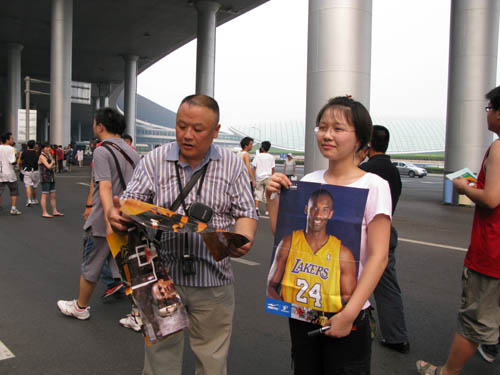 鄭非凡與父親一起專程趕至首都機場,只為一睹科比風采。即將就讀高一的鄭非凡說,從兩年前開始喜歡科比,“因為他球打得特別好”,也十分喜歡中國的姚明。