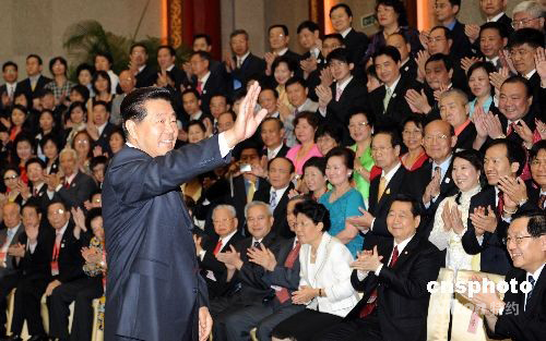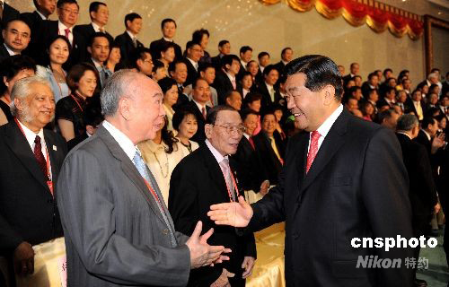 8月8日,中共中央政治局常委、全國政協(xié)主席賈慶林在北京釣魚臺國賓館會見出席北京奧運開幕式的近200位華人華僑代表。中新社發(fā) 廖攀 攝