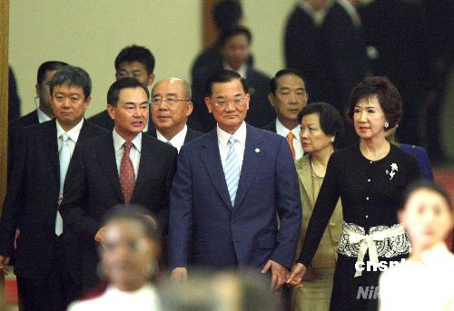 8月8日,中共中央臺(tái)灣工作辦公室主任王毅陪同中國國民黨榮譽(yù)主席連戰(zhàn)、中國國民黨主席吳伯雄、親民黨主席宋楚瑜等出席北京奧運(yùn)歡迎宴會(huì)。 中新社發(fā) 廖文靜 攝