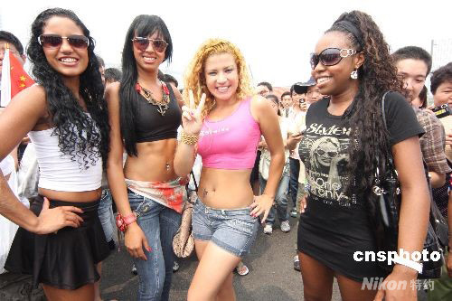 圖:外國美女"鳥巢"旁跳桑巴迎接奧運開幕