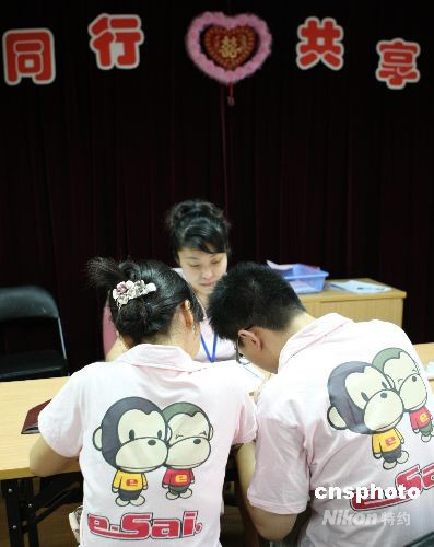 8月8日北京奧運(yùn)會(huì)開幕當(dāng)天,上海迎來結(jié)婚潮,眾多新人為趕“雙喜臨門”,一早就來到民政局排隊(duì)登記結(jié)婚。 中新社發(fā) 湯彥俊 攝