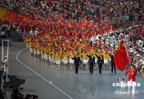 圖:北京奧運會開幕中國代表團入場