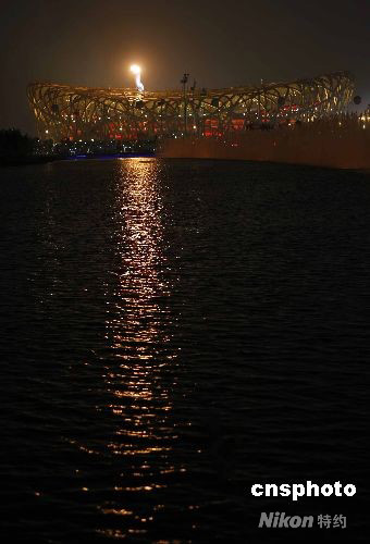 8月8日,第29屆夏季奧運(yùn)會(huì)在北京奧林匹克公園內(nèi)的國家體育場(chǎng)“鳥巢”舉行。李寧點(diǎn)燃北京奧運(yùn)會(huì)主火炬,奧運(yùn)圣火在鳥巢上空熊熊燃燒。 中新社發(fā) 盛佳鵬 攝
