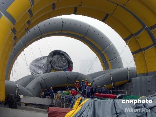 圖為建造中的氣房子。中新社發(fā) 佟偉 攝