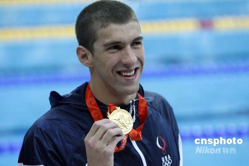 圖:菲爾普斯奪得北京奧運會男子400米個人混合泳金牌