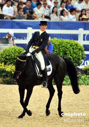 八月十日,北京奧運(yùn)馬術(shù)三項(xiàng)賽個(gè)人賽之盛裝舞步環(huán)節(jié)的賽事在香港沙田奧馬賽場(chǎng)結(jié)束。澳大利亞馬術(shù)隊(duì)在這一環(huán)節(jié)積分暫時(shí)領(lǐng)先。中新社發(fā) 鄧慶樂(lè) 攝