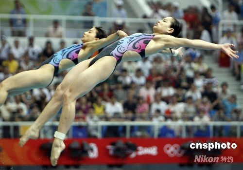 圖:郭晶晶、吳敏霞水立方“飛翔”