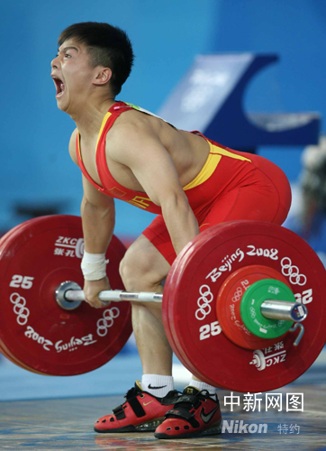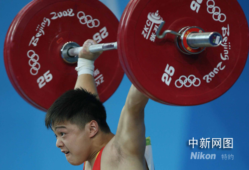 年僅十七歲的中國選手龍清泉在北京奧運(yùn)會(huì)舉重項(xiàng)目男子56公斤級的比賽中,勇奪冠軍。這是中國軍團(tuán)在本屆奧運(yùn)會(huì)上獲得的第六面金牌。中新社記者 武仲林 攝