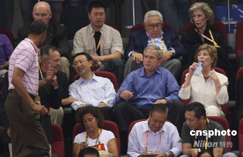 圖:北京奧運會中美男籃大戰(zhàn) 布什父子觀戰(zhàn)