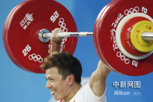 8月11日,在北京奧運會舉重男子62公斤級比賽中,中國選手張湘祥贏得金牌。中新社發(fā) 盛佳鵬 攝