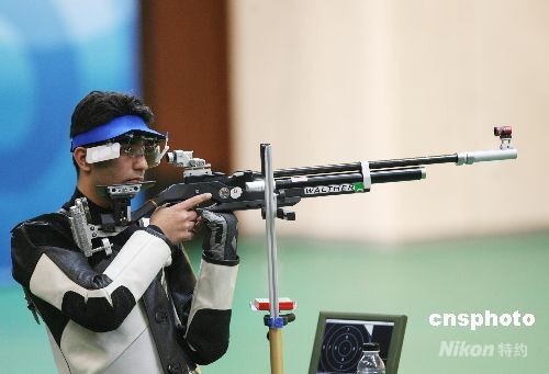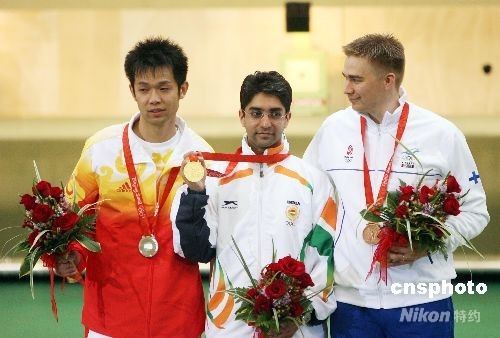 8月11日,印度選手賓德拉以700.5環(huán)奪得北京奧運(yùn)會(huì)男子10米氣步槍金牌。這也是印度獲得的第一枚奧運(yùn)會(huì)個(gè)人項(xiàng)目金牌。中新社發(fā) 武仲林 攝