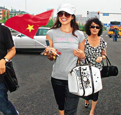 前晚章子怡則與外籍未婚夫ViviNevo包下包廂,欣賞中國對美國男子籃球賽,當(dāng)美國隊連續(xù)得分后,她即急得站起來為中國隊打氣。