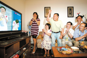 看火亮比賽緊張嗎?火志剛瀟灑地說(shuō):“不緊張。人多就不緊張了!逼鋵(shí),比賽剛開(kāi)始時(shí)他緊張得不得了;鹆梁土周S前幾輪比賽,火志剛和妻子張愛(ài)英一笑也不笑?吹交鹆梁土周S完成最后的精彩一跳,大家頓時(shí)一陣歡呼,家里的電話也立刻響了起來(lái),但火亮的父母被記者團(tuán)團(tuán)圍住,根本無(wú)暇接聽(tīng)。