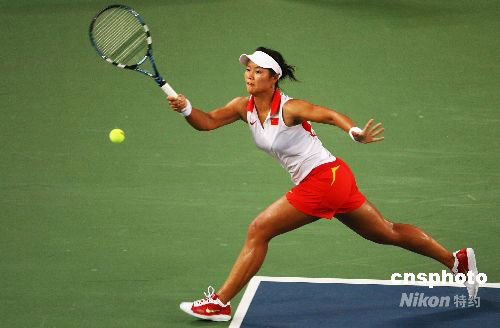 8月11日深夜,中國女網(wǎng)代表人物李娜在北京奧運(yùn)會女子網(wǎng)球單打比賽中,以2比0戰(zhàn)勝3號種子俄羅斯名將庫茲涅佐娃晉級。兩盤的比分是:7:6、6:4。圖為李娜在比賽中。中新社發(fā) 沈晨 攝