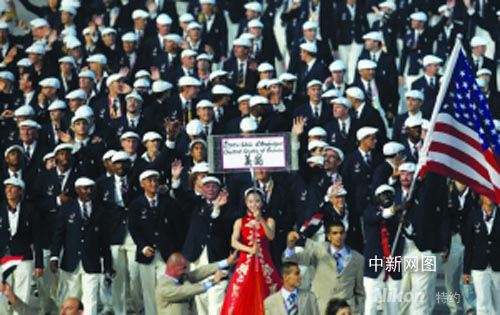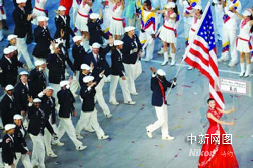 圖為周旦妮帶領(lǐng)美國(guó)隊(duì)入場(chǎng)。