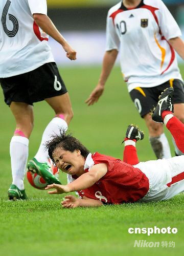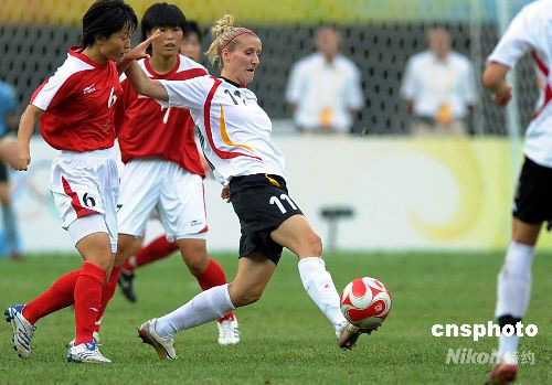 8月12日下午,奧運女足小組賽進(jìn)行到第三輪,朝鮮女足和德國隊的較量在天津“水滴”體育場進(jìn)行,德國隊以1:0勝朝鮮隊。中新社發(fā) 陳文 攝