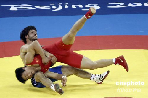 8月13日,北京奧運(yùn)會(huì)摔跤男子古典式74公斤級(jí)冠亞軍決賽中,中國(guó)選手常永祥(紅)不敵格魯吉亞選手馬努恰爾·克維克利亞,獲得銀牌。這枚銀牌也創(chuàng)造了中國(guó)男子摔跤隊(duì)在奧運(yùn)會(huì)比賽的最佳成績(jī)。 中新社發(fā) 盛佳鵬 攝