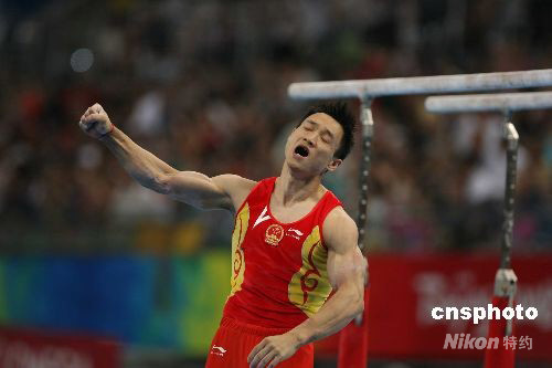 8月14日,中國奧運(yùn)“三朝元老”楊威在北京奧運(yùn)會(huì)體操男子個(gè)人全能決賽中力壓群雄,以94.575分,高出亞軍2.6分的較大優(yōu)勢,奪得這塊體操個(gè)人項(xiàng)目中分量最重的金牌,他也成為繼李小雙之后中國體操的第二位個(gè)人全能奧運(yùn)冠軍。中新社發(fā) 武仲林 攝